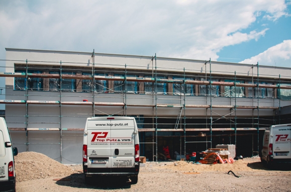 Zwischen dem Unimarkt in Langenstein und unserem Wohnhaus "Long Living Langenstein" wird der zweistöckige Neubau samt Multifunktionssaal, Café und Frisörsalon errichtet. Vor dem Gemeindezentrum entsteht ein 800 Quadratmeter großer Ortsplatz. Voraussichtlich im Sommer 2021 fertiggestellt.