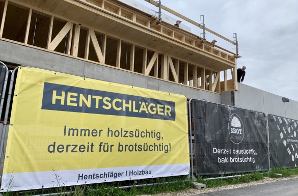 Die Linzer Bäckerei Brotsüchtig hat nun am 27. Oktober 2020 ihre 3. Filiale in Steyregg eröffnet. Auf gesamt 700 m² sind Büro- und Personalräume im Obergeschoß zu finden, ein Verkaufsshop mit Sitzmöglichkeiten im Erdgeschoß, sowie eine großzügige und moderne Backstube. Unsere Zimmerei hat hier einen Holzriegelbau samt Holzfassade durchgeführt. Der neue Standort von Brotsüchtig zwischen Billa und Hofer ist gut besucht und durch die gläserne Schaubackstube kann man zusehen, wie die Brote namens "Krustav", "Roger Roggen" oder auch "Volker Vollkorn" entstehen. „Die Leute sollen wieder die Verbindung zum Handwerk bekommen; wie etwas entsteht. Das hat man ja komplett verlernt durch die Automatisierung in Großfabriken“, sagt Raferzeder als Verfechter der Brotbacktradition.