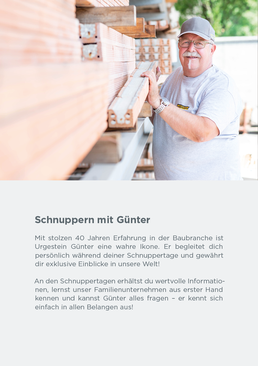 Rund um das Jahr besteht die Möglichkeit, in Absprache mit unserem Sekretariat, Schnuppertage bei uns wahrzunehmen. Was du dafür tun musst? Einfach bis zum Ende dieser Seite scrollen und dich anmelden. An deinen Schnuppertagen wirst du von unserem Urgestein Günter Fürlinger begleitet.