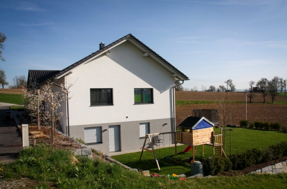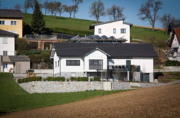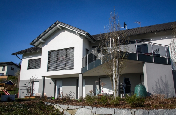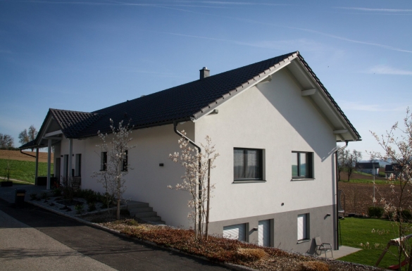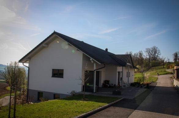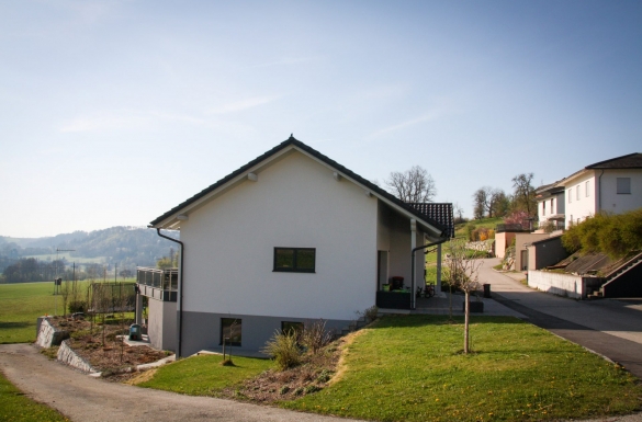 In St. Georgen wurde dieses Einfamilienhaus von uns 2016 geplant und errichtet. Das Satteldach wurde von unserer Zimmerei aus Holz gefertigt. Der spitz zulaufende Balkon ist ein echter Hingucker und sorgt auf der Terrasse für ausreichend Schatten. Ein wirklich sehr schönes und großzügiges Einfamilienhaus bei dem es an nichts fehlt.